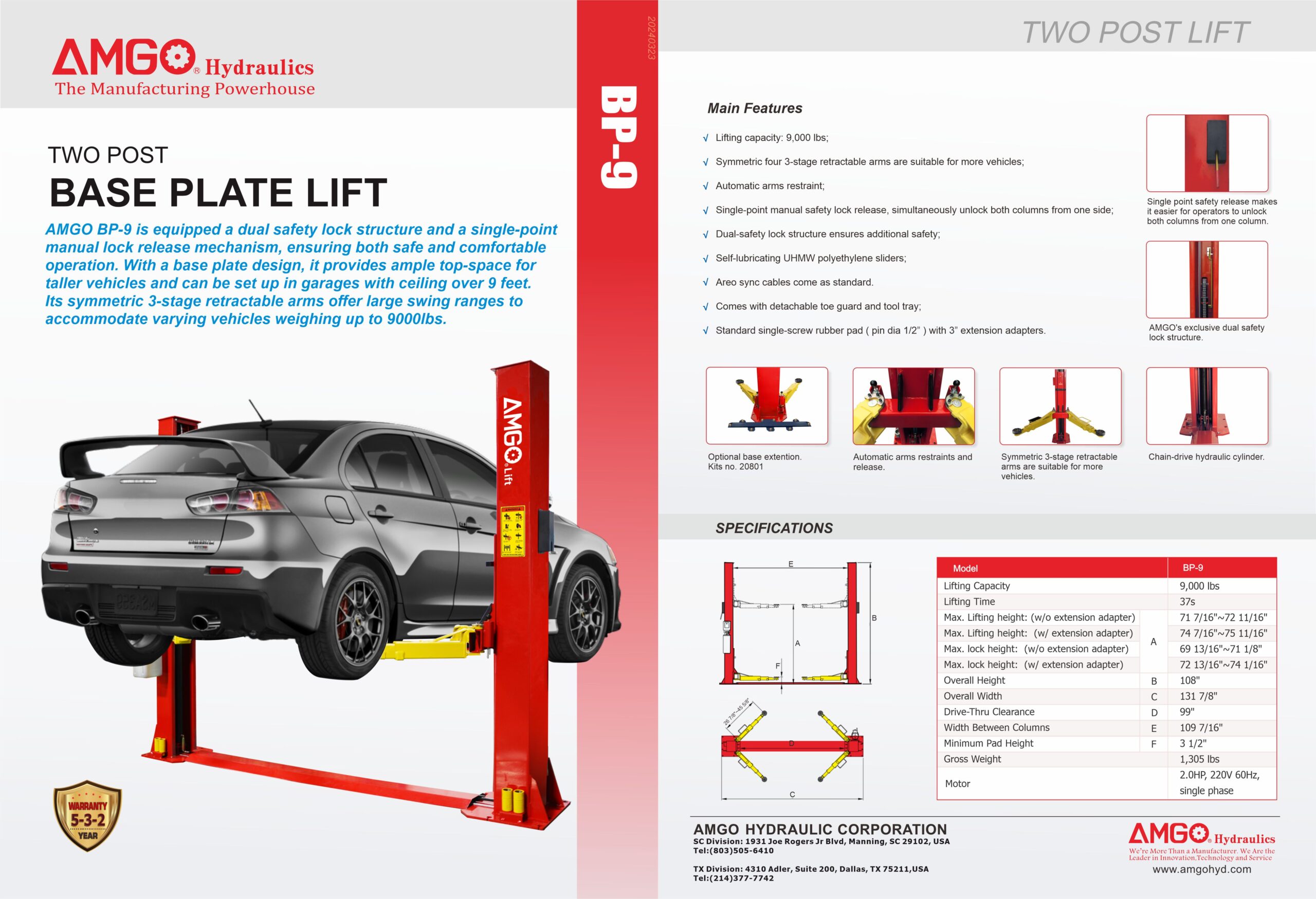 | Name | AMGO BP-9 9,000 Lb. 2-Post Baseplate Lift – Low Ceiling |
