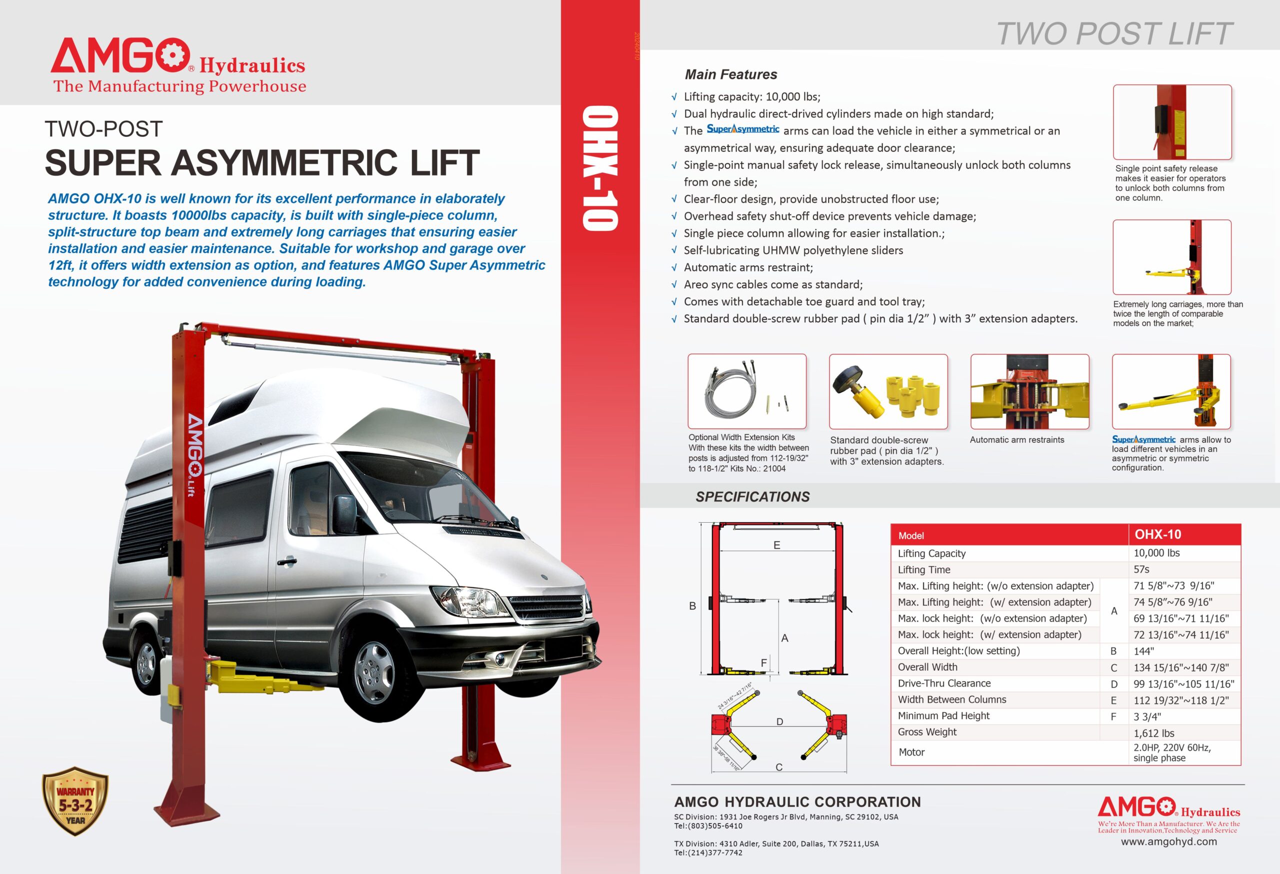 | Name | AMGO OHX-10 10,000 Lb. 2-Post Clear-Floor Lift – Extra-Tall |