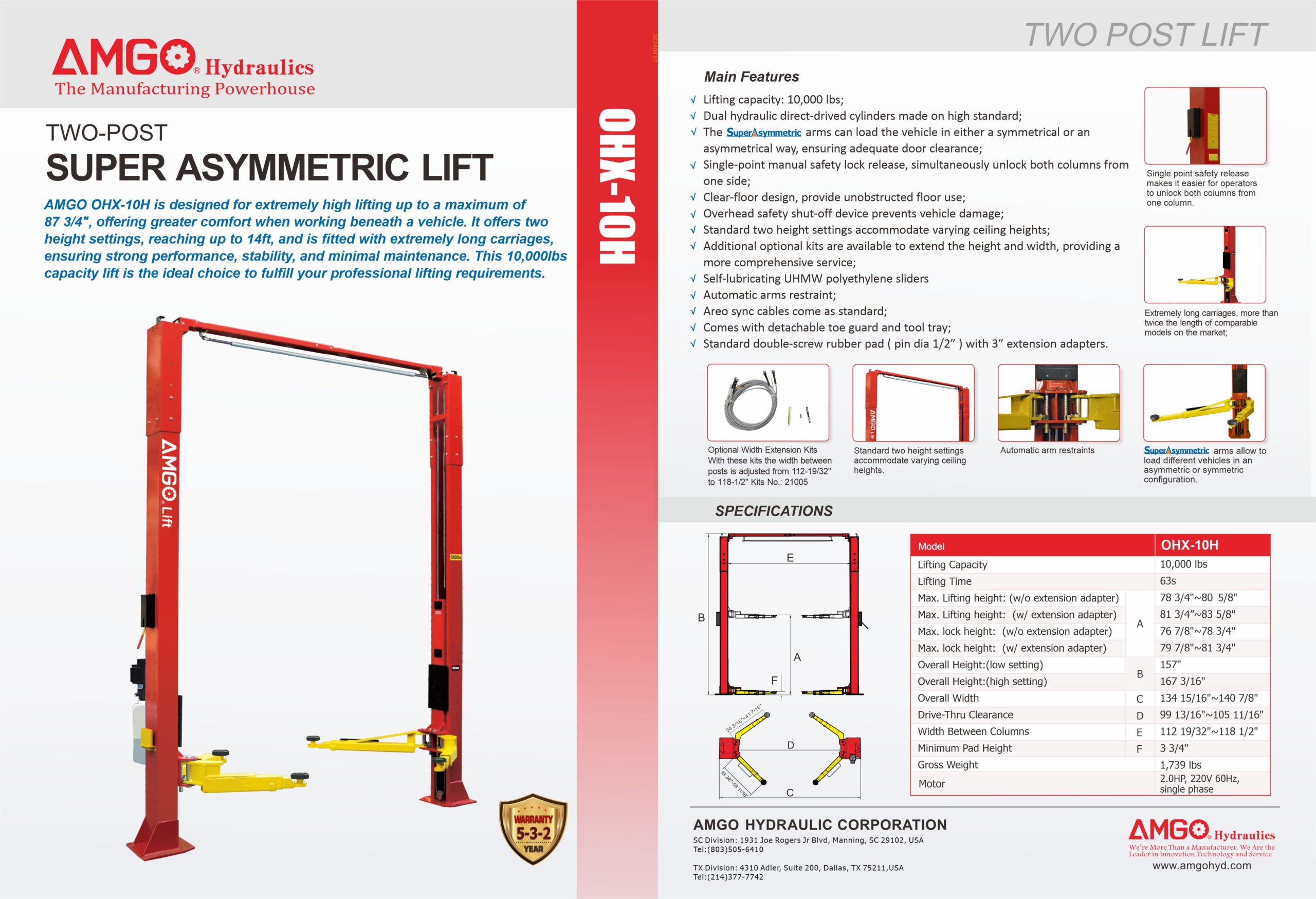 | Name | AMGO OHX-10H 10,000 Lb. 2-Post Clear-Floor Lift – High-Rise |
