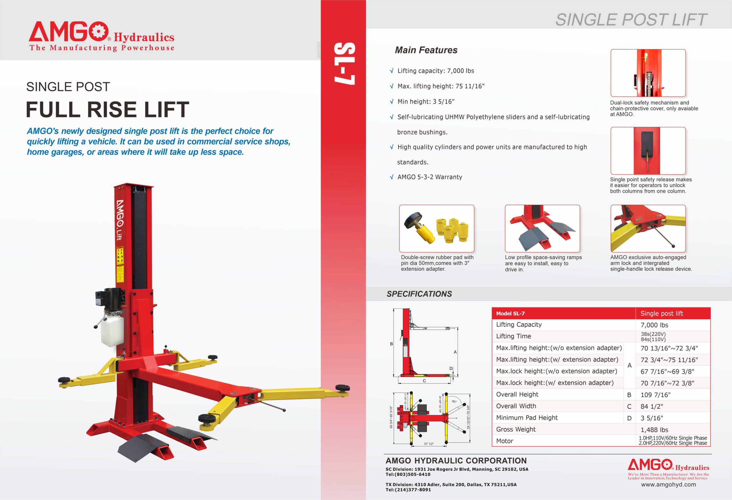 | Name | AMGO SL-7 7,000 Lb. Fixed Single-Post Service Lift |